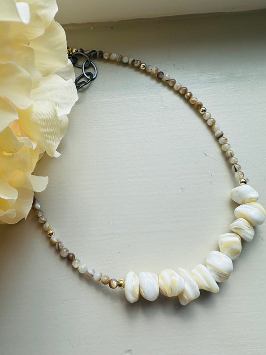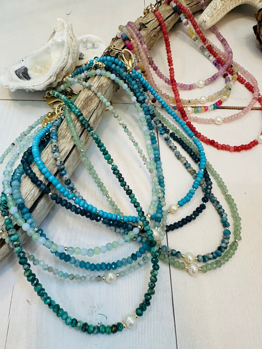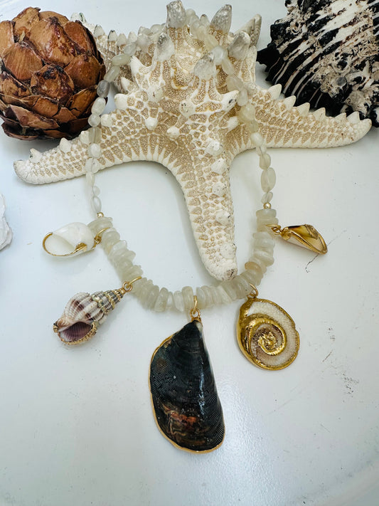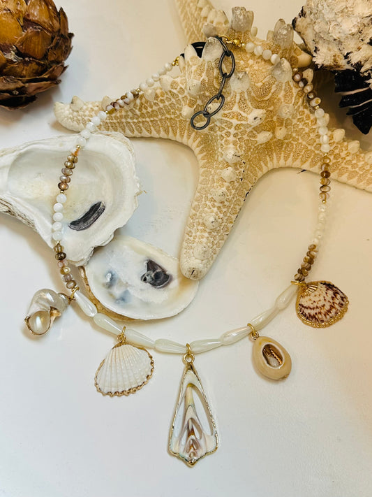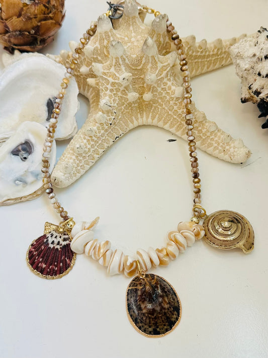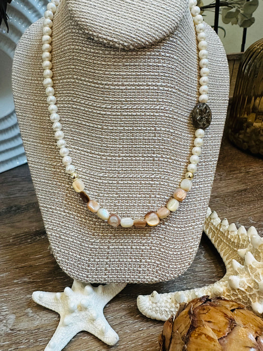 Each necklace is hand strung using the highest quality freshwater pearl beads in various shapes & colors to design the ultimate, modern classic, timeless piece. Some designs will include charms of metal or shells. Please read description for each necklace.