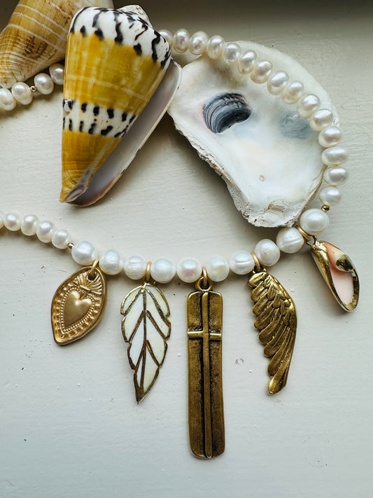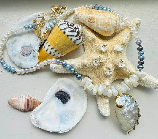 Each necklace is hand strung using the highest quality freshwater pearl beads in various shapes & colors to design the ultimate, modern classic, timeless piece. Some designs will include charms of metal or shells. Please read description for each necklace.
