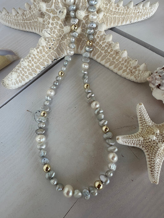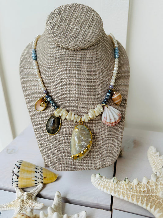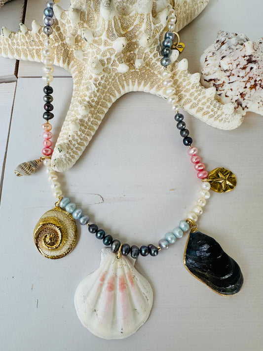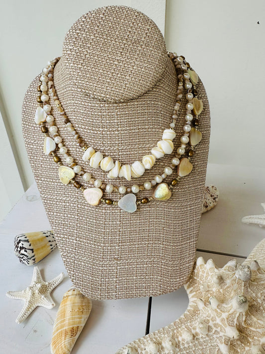 Each necklace is hand strung using the highest quality freshwater pearl beads in various shapes & colors to design the ultimate, modern classic, timeless piece. Some designs will include charms of metal or shells. Please read description for each necklace.