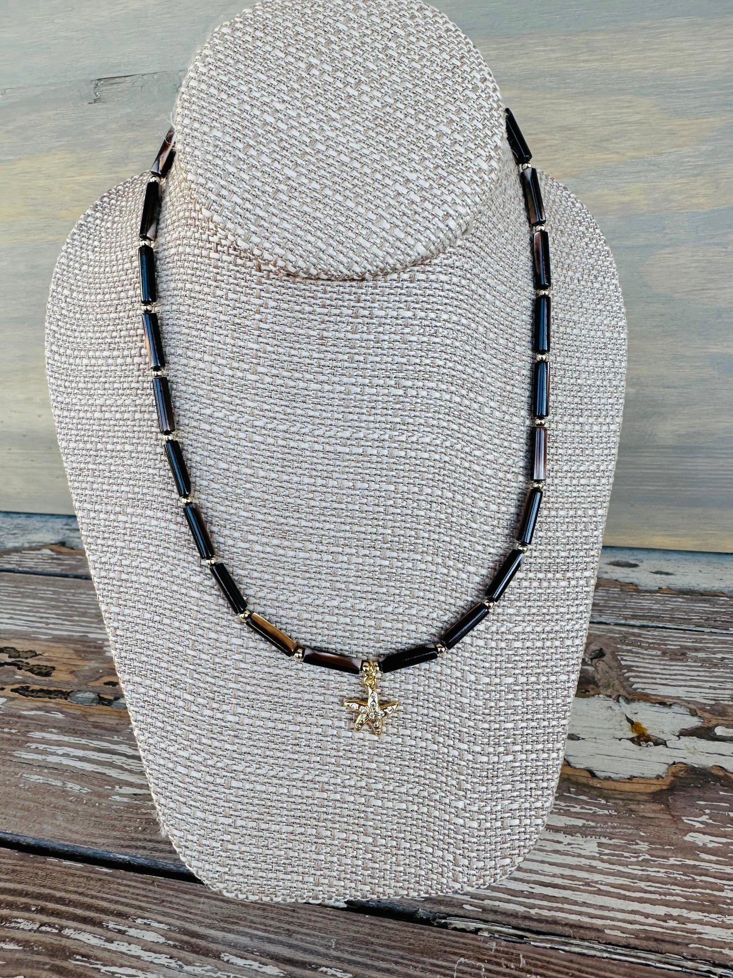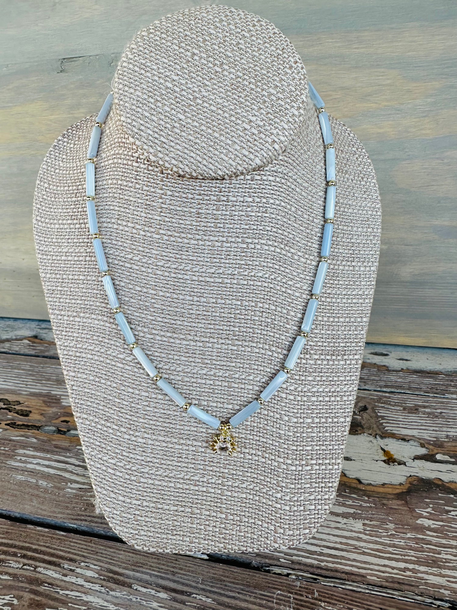 How sweet is the mother of pearl tube bead, dainty necklace? She’s so light & airy & brings the cutest little coastal inspired charm along with her.