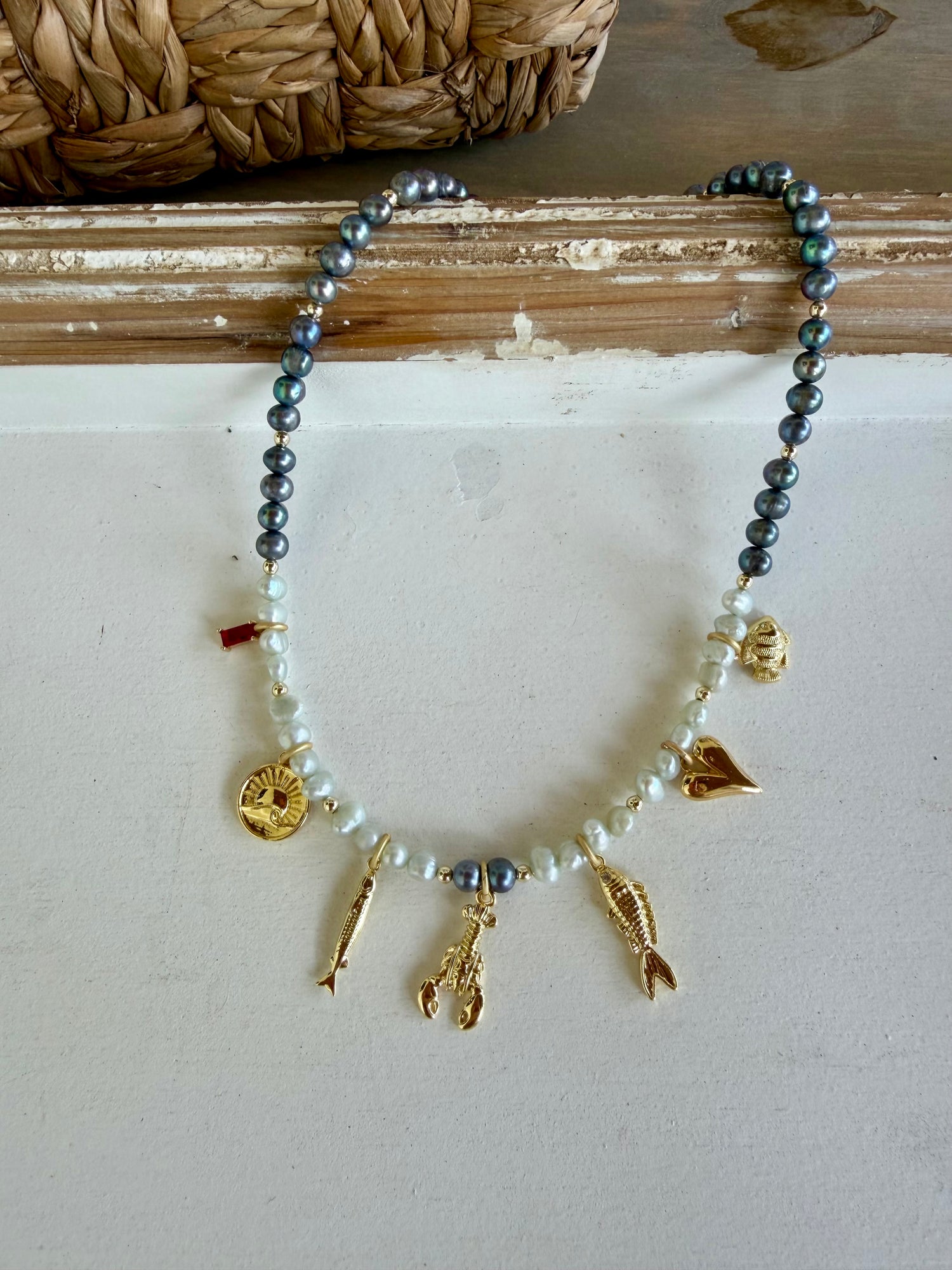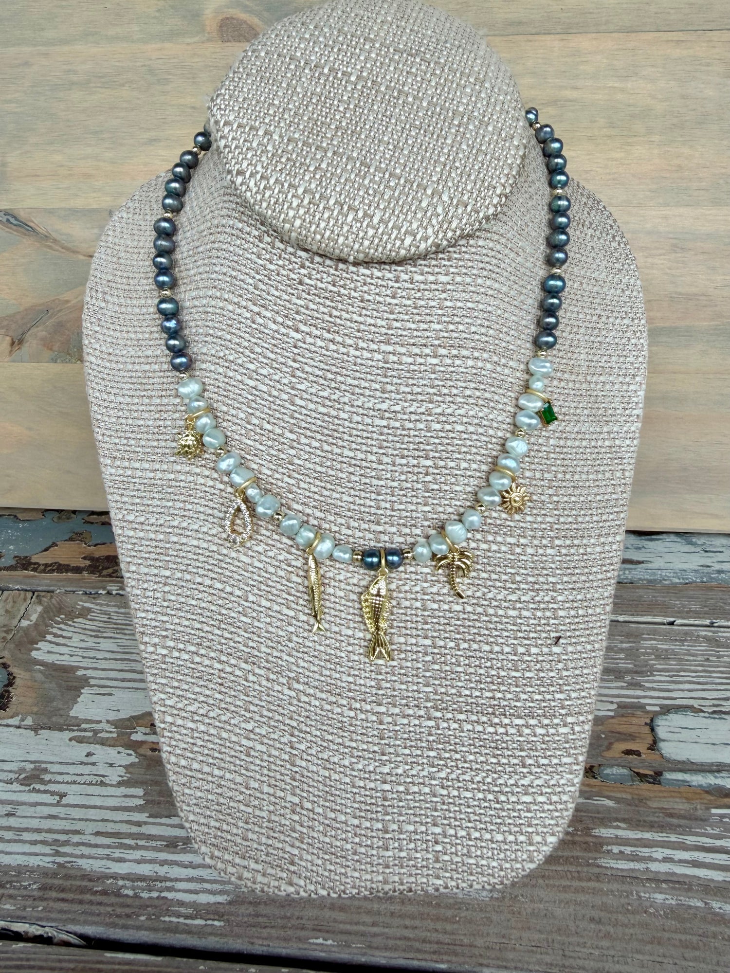 “Midnight Charmer” Freshwater Pearl Charm Necklace